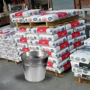 При работе используйте один и тот же объем ведра. Чтобы определить вес материала в емкости, нужно знать насыпную плотность каждого компонента. Этот показатель указывается в сертификате качества, либо на мешке при покупке упакованного материала.